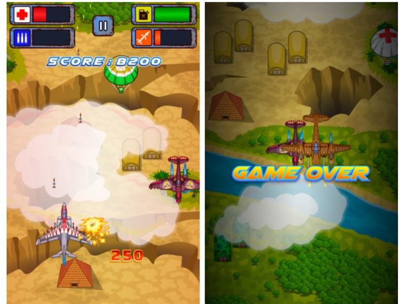 Description:Great Air Battles, is a fascinating and beautiful game in which you have to collect stars, life, ammunition, missiles, fuel and various improvements and destroy enemy aircraft and fighter! Simple operation: the upward movement by pressing the up arrow key, move down, by clicking on the down arrow to move to the left by clicking the arrow to the left, move to the right, pressing the right arrow, shoots automatically or touch of the game for mobile devices. Mobile control helicopter: 1. Touch the helicopter and move him; 2. Use the joystick.