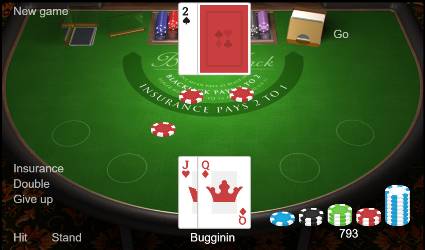 Description: The name of the game is to beat the Bank, in the person of the Dealer, without exceeding 21. Otherwise you lose your bet. If you reach a Blackjack (21) your bet is multiplied by 3. If you beat the Dealer without reaching 21, you win double your bet.