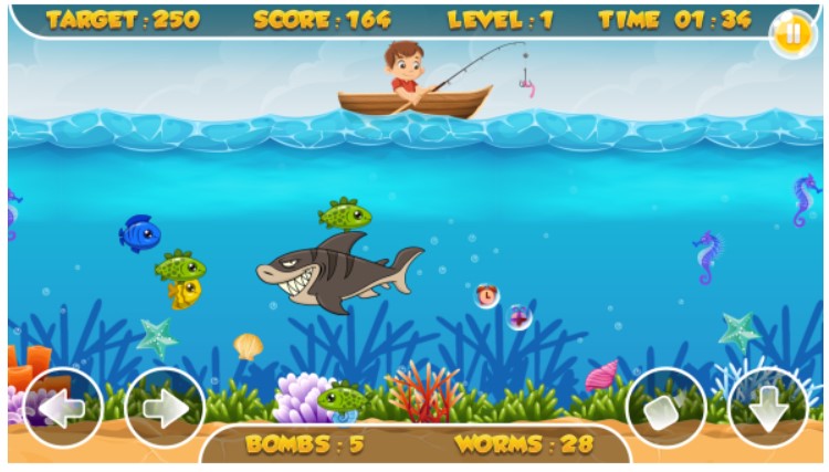 Description:Fishing Frenzy – a very popular game about fishing! You’re in it to fight for prey, fish, blow up rabid sharks and sea horses, collect star fish and seashells, catch bubbles and bombs, worms, treasure, watches and gifts. You have so much to collect in this game and everything is possible! Fish your way to the top and be the top player in this sea battle! Management boat and a fishing rod: the arrow keys left, right, down, or alternatively, the keys A, S, D. Reset bomb: Spacebar. Touch Control works on all browsers and all mobile devices!