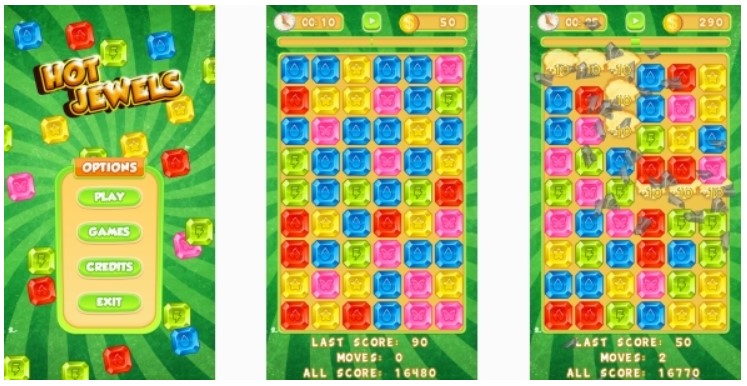 Description:Hot Jewels is a simple match 3 game, tap screen drag and drop the jewel get high score.