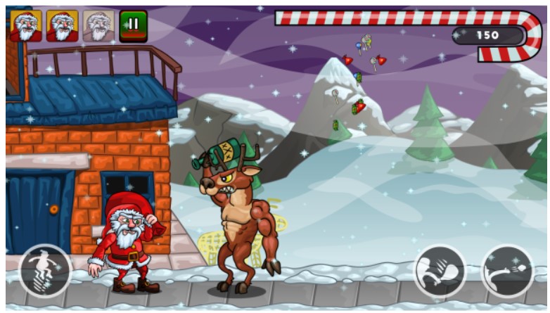 Description:Santa Run – The Santa lost his presents. Now you need to help the emu collect these gifts and protect them from dangerous elves, evil deer, cookies and snowmen. PC controls: W, Up Arrow – Jump, Spacebar – Shoot, E – Hit. Touch Control works on all browsers and all mobile devices!