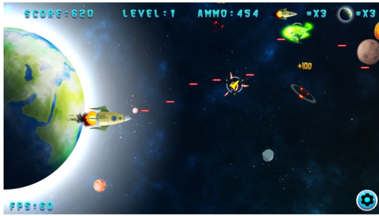 Description:Protect the Earth from asteroids and small planets as long as possible! Use your mouse to move and shooting. In each level you have of ammo which increases the number of hits, get the extra score and ammo at the end of the level. The game has a bonus: three types of your spaceship, three types of laser, protection spaceship life improvements. The game has 10 levels to win, the one who will be able to pick up 1,000,000 points, will be the winner! Your mission will failed if the Earth is stricken x3 or you lose x3 lives!