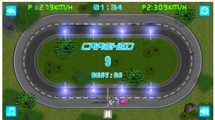 Description:Dont crash this is the only rule of the game. Controls in oneplayer game: (Shift & Touch), Controls in twoplayer game: Player-1 (Shift & Touch left pole on display), Player-2 (UpArrow & Touch right pole on display). Made in Construct 2. Enjoy the game!