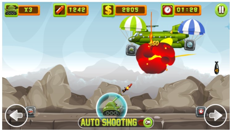 Description:Tank defender – this is a game about the defense of their territories from enemy invaders, in this beautiful game you control a super tank, the main task is to defend your territory as long as possible from enemy planes and bombs as well as collect the boxes of supplies that reset, your military cargo planes. Hold out as long as possible and show that you’re a real tankman! PC controls tank: the arrow keys left and right, or alternatively, the keys A and D. Shoot rockets: Mouse. Touch Control works on all browsers and all mobile devices!