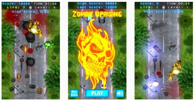 Description:Destroy zombie uprising at all costs! An interesting and addictive game with different types of zombies and difficulty levels, nice graphics and sounds. Connected storage function s top score and final score. Also in the game there are more bombs and life for the player in the role makes the game more attractive!